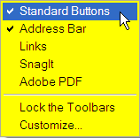 The next two bars may be visible or not. They are the Standard Buttons and the Address bar. If they are not visible, right-click on the menu bar and select them from the menu.